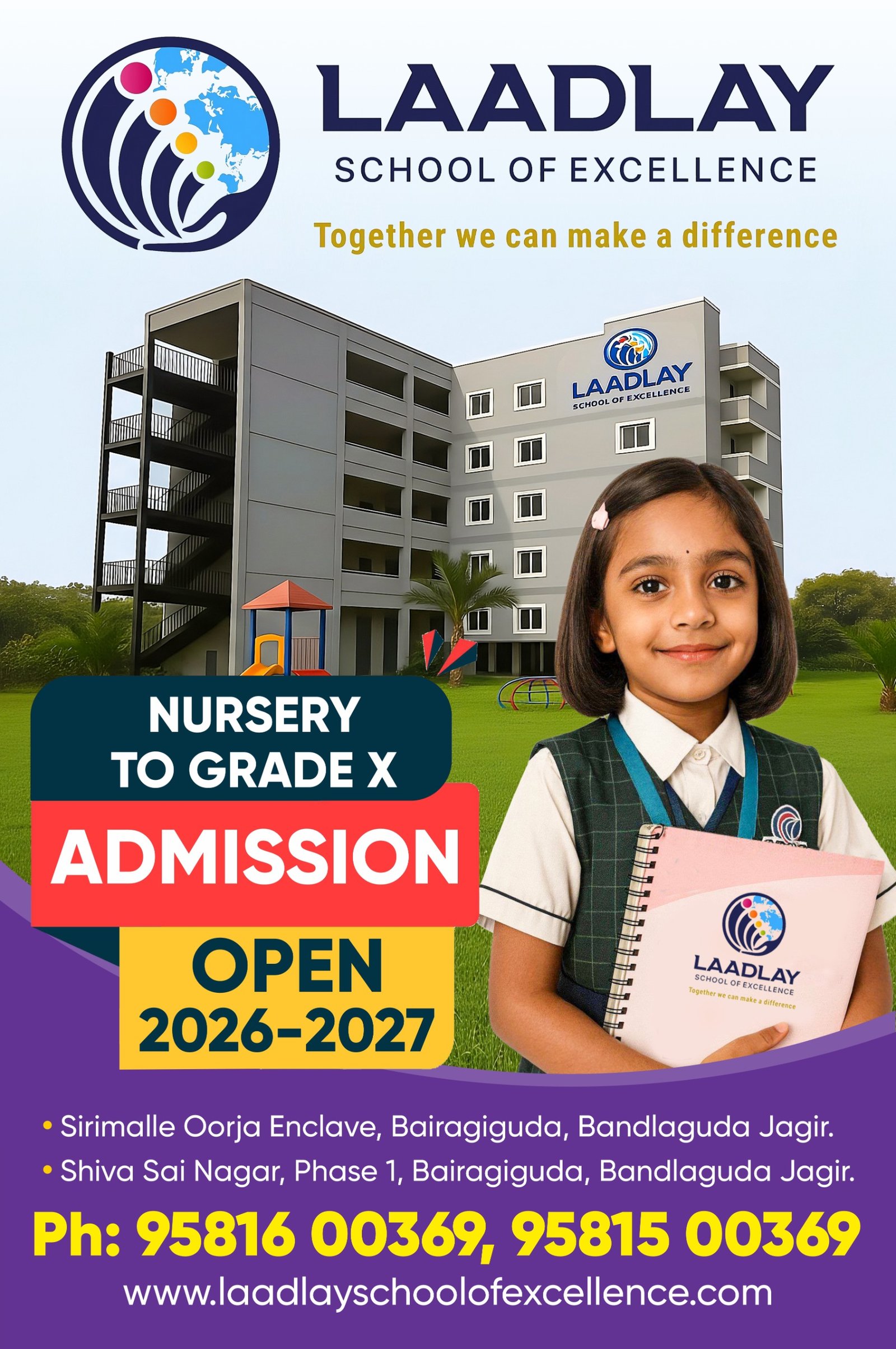 At Laadlay School Of Excellence School, Hyderabad one of the upcoming best CBSE schools, we endeavor to promote a classroom of thinkers who would have the courage and conviction to lead the world with their astute insight, competency, caliber, and impeccable values. The school’s motto ‘Together -Towards -Tomorrow Seamlessly ’ epitomizes the school’s commitment to broaden the students’ horizons and enabling them to carve an integrated and enlightened world- a world that fosters unity yet celebrates the uniqueness of each individual.